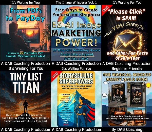 products - everything from 20 ways to grow revenue with PDFs to zero-cost ways to create amazing images to WOW ideas for list-building...: